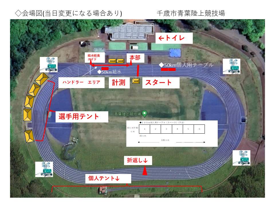※50kmについては、コース内に個人用テーブル・給水用のテーブルを用意します。